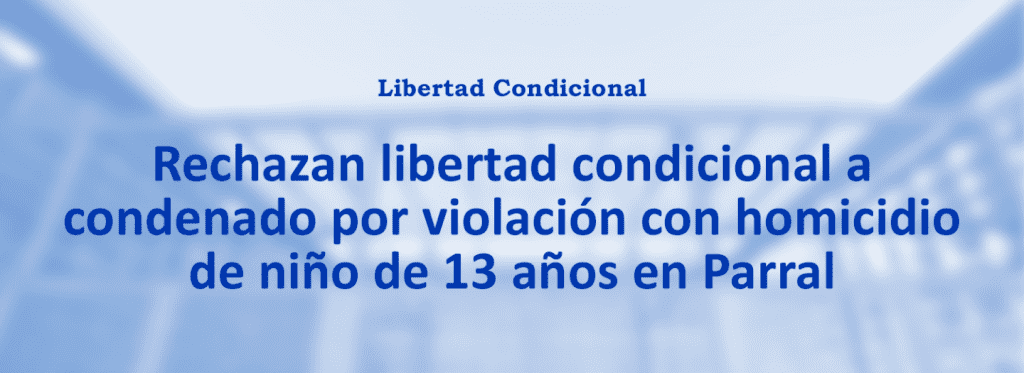 La Comisión de Libertad Condicional de la región del Maule, rechazó de forma unánime la solicitud presentada por Héctor Riveros Retamal, condenado a presidio perpetuo por el homicidio calificado de un niño de 13 años y a 15 años de presidio como autor de violación de la misma víctima, crimen cometido en Parral en mayo […]